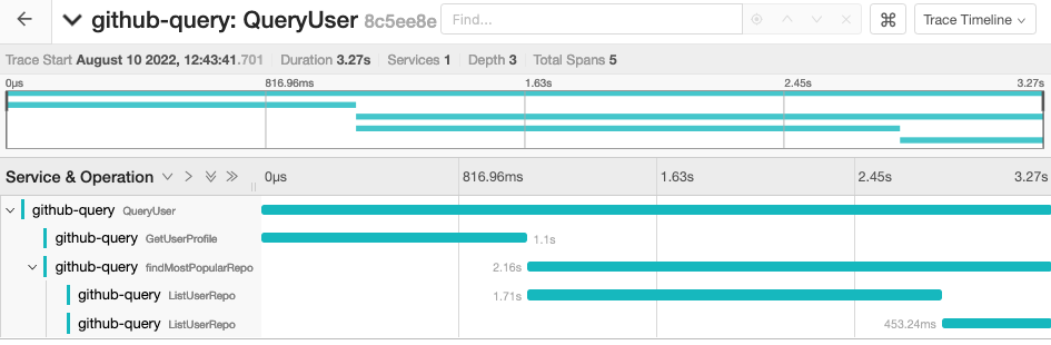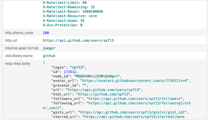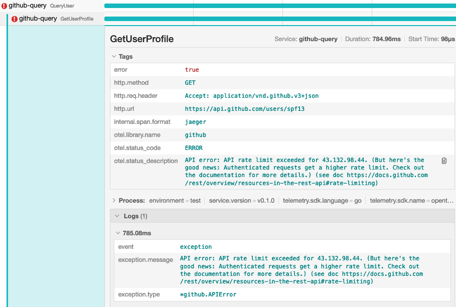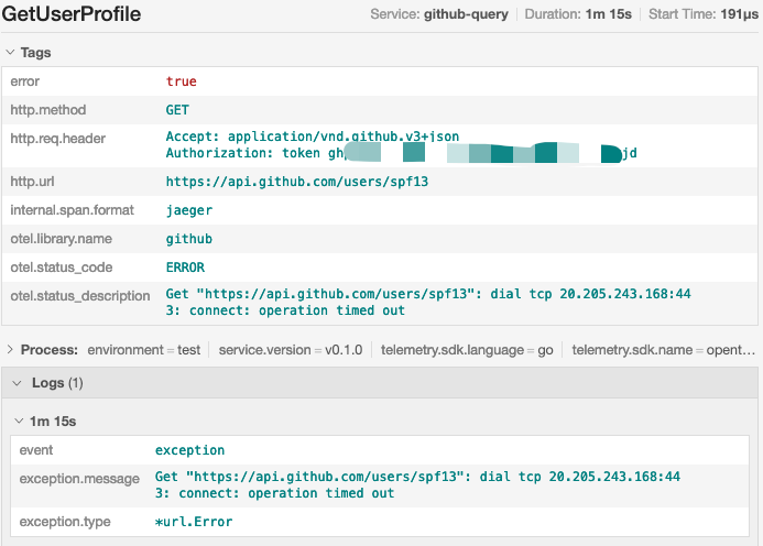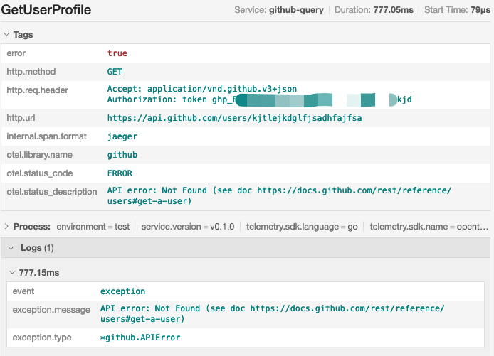 QueryUserrequires a username to query the profile of the specified GitHub user.- Create a root span named